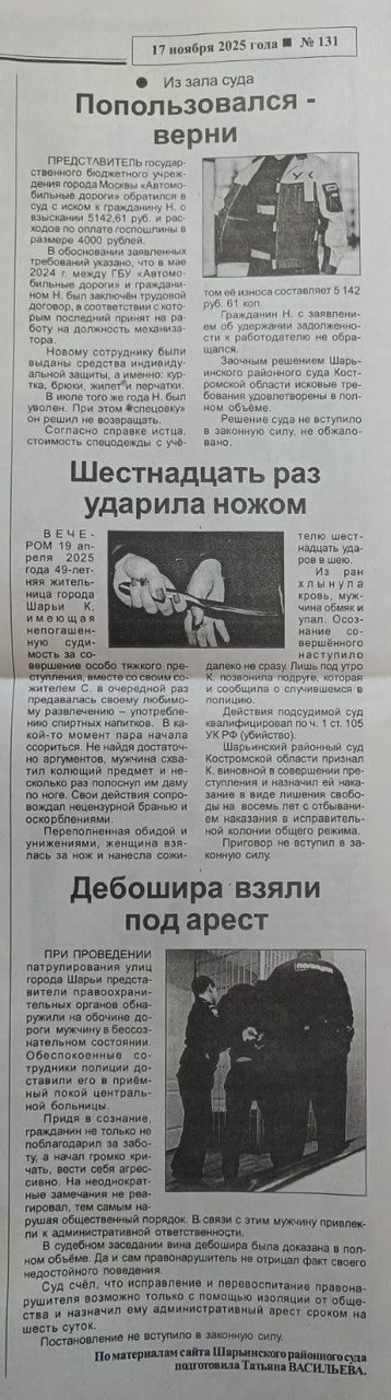 "Районный вестник" (п.Поназырево) от 17.11.2025 № 131версия для печати
